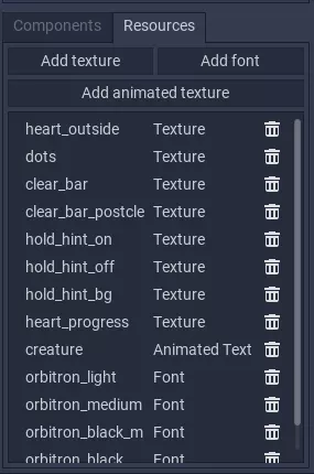 大纲视图 这里是管理组件及其绘制顺序的地方,分为多个图层。目前有一个位于笔记上方的图层和一个位于笔记下方的图层,它们的作用正如其名称所示——每个图层的所有子组件将分别绘制在游戏笔记的上方和下方。 右键点击每个组件可以对其进行操作,选项的含义相当直观。 组件选择器/资源管理器