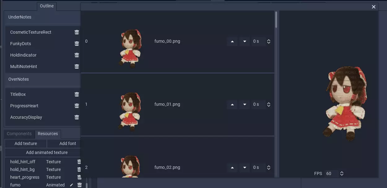之后,你可以在动画纹理编辑器中更改顺序、帧率和延迟,该编辑器可通过点击资源管理器中铅笔形状的【编辑】图标来打开。