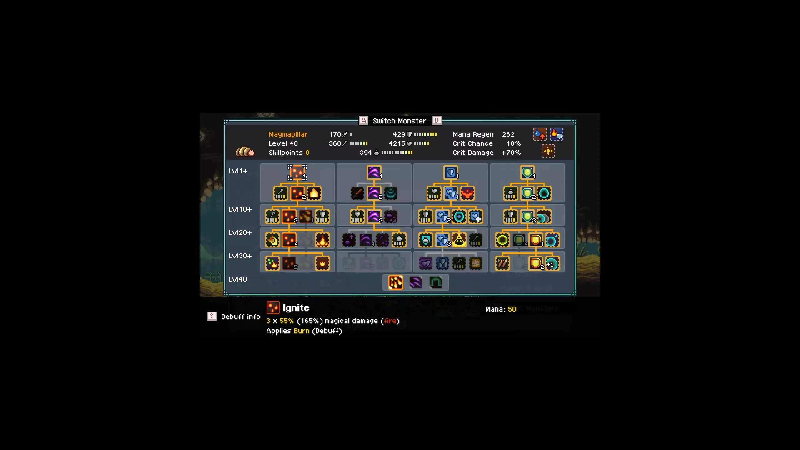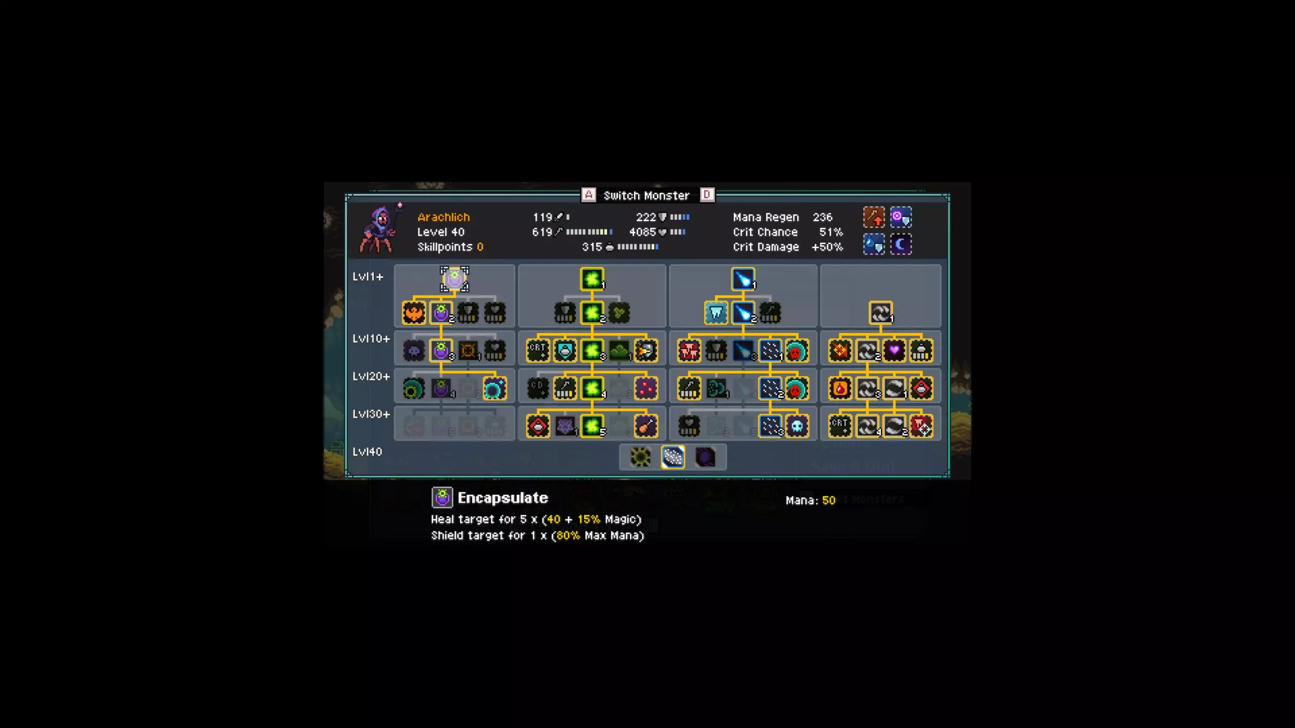 食物:3个花生 如果你想知道这些物品的获取位置: - 毒飞镖:古代森林中进化之树附近的商人处购买 - 闪电球:古代森林中通往地平线海滩前的宝箱,需要【高级飞行】能力 - 坩埚:岩浆密室的炼金术士处购买(需先击败冠军怪物) - 哑铃:古代森林隧道中的冠军怪物布鲁图斯掉落 - 血管:蓝色洞穴的宝藏,位于传送点下方的小房间内,需要【召唤巨石】能力 战斗配置: 我方首发:真菌怪、岩浆毛毛虫、骨蜘蛛 敌方首发:疯眼、格鲁米、格卢鲁 格卢鲁是一只强大的怪物。我在第一回合尽可能集火他 第一回合我使用了: - 毒云 - 火焰护盾 第二回合: - 让格鲁鲁的真菌进行攻击 - 岩浆虫使用护盾 - 蛛巫妖使用冰风暴或暗影风暴 接下来就看你自己的决策了。真菌在需要时会攻击并重新施加毒素,岩浆虫只使用火焰护盾和护盾,从不攻击。蛛巫妖在不需要治疗时会使用暗影风暴和暗影抓取。 全程没有使用终极技能。 希望这个攻略能帮到那些和我一样在这场战斗中遇到困难的人。 祝你冒险愉快!