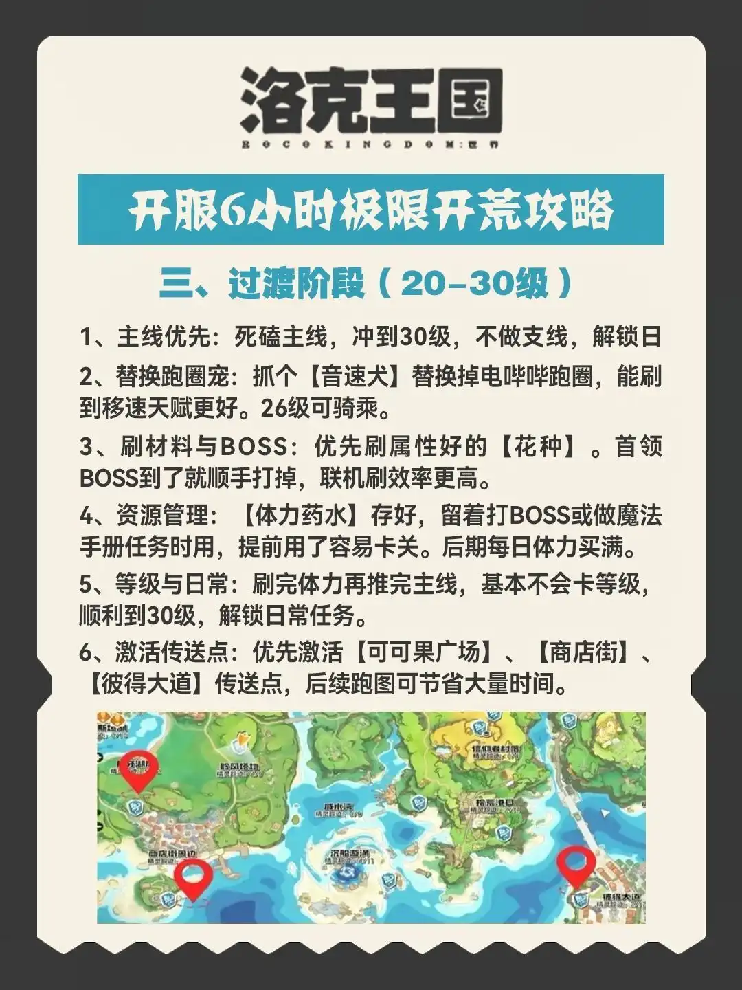 0-30 级:死磕主线冲级 30 级后:日常 + 图鉴 + 刷材料