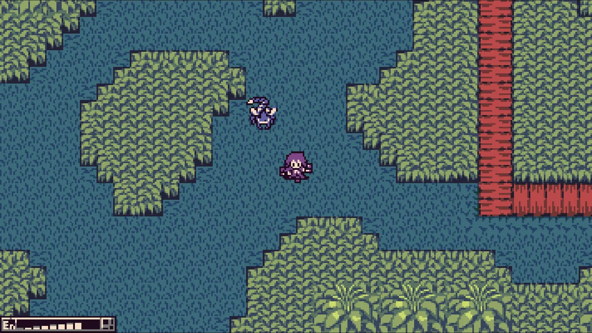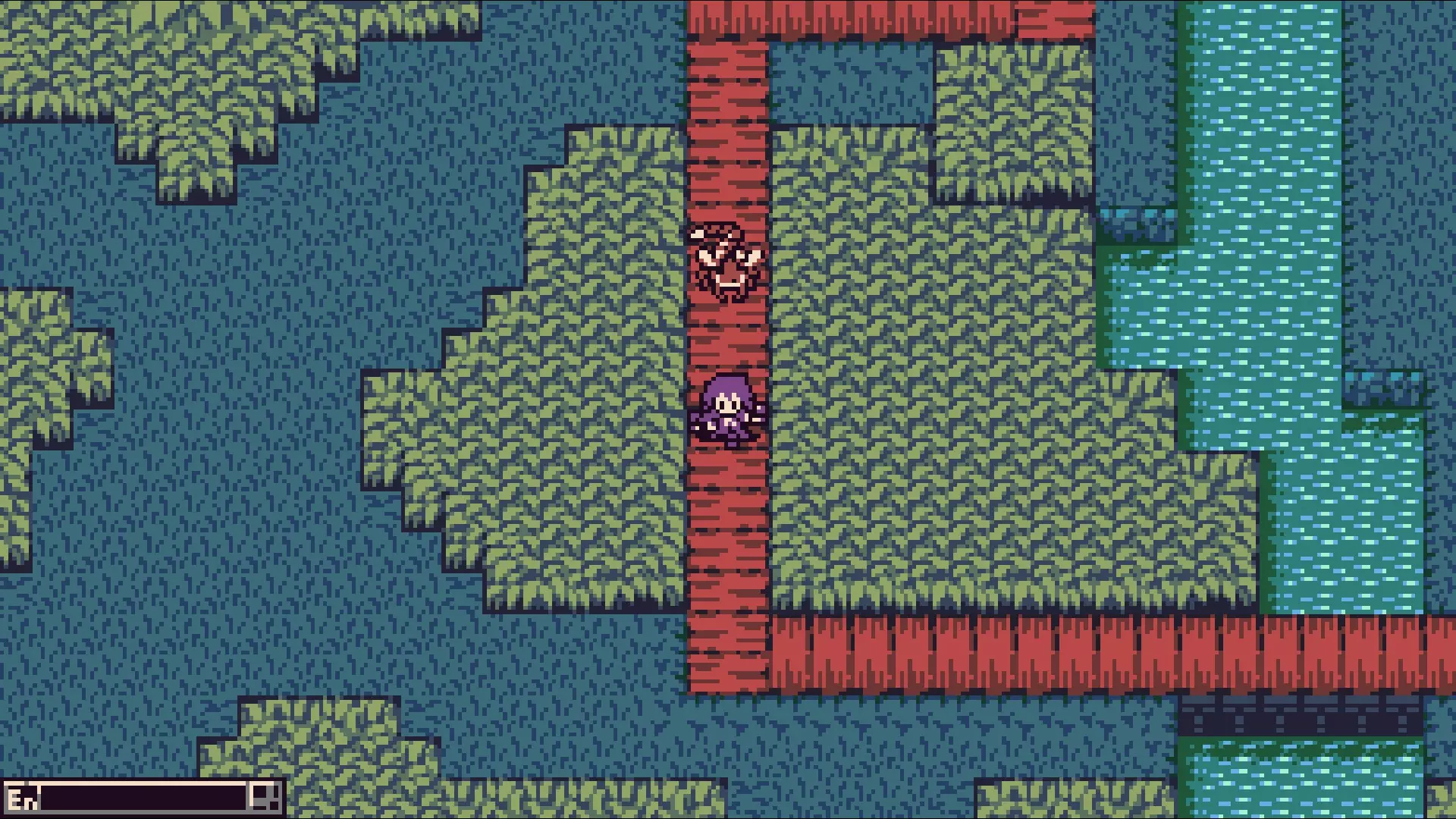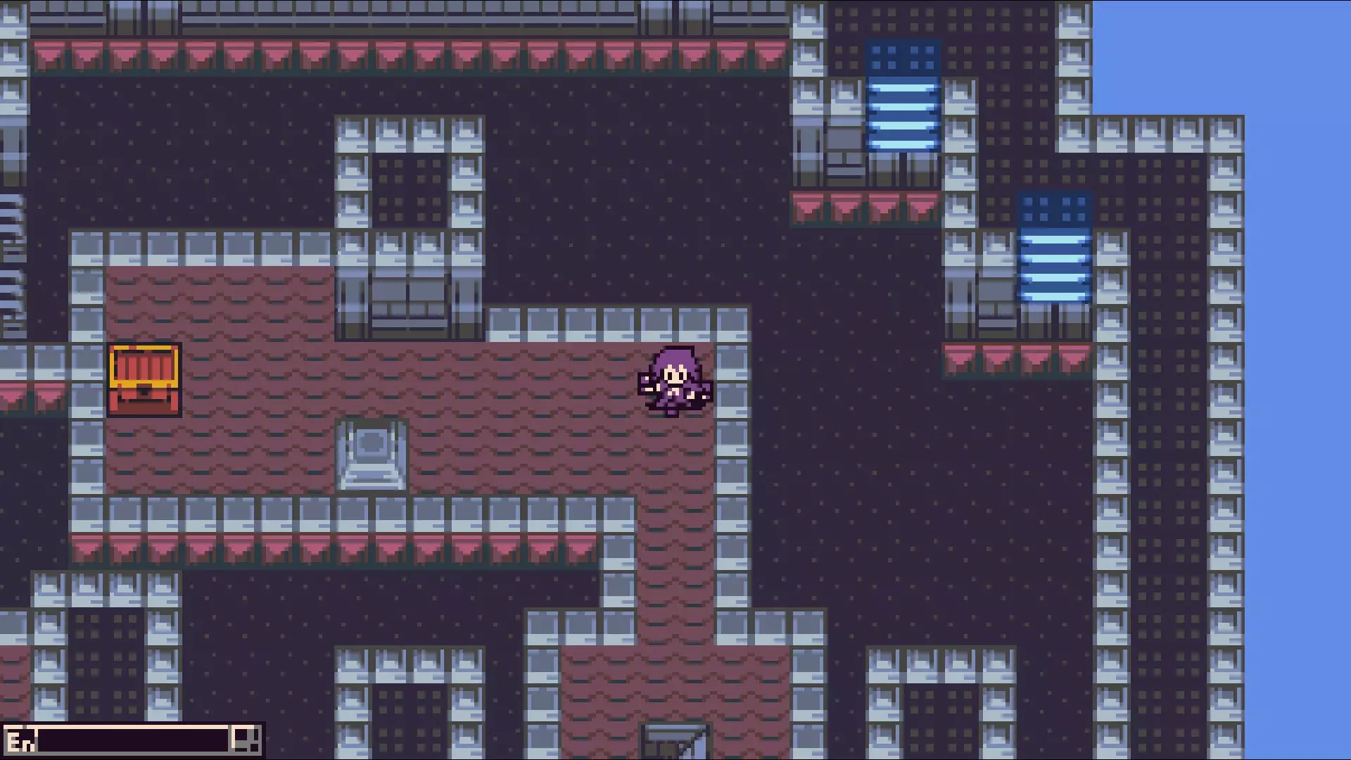 当红蓝缆车都到达东侧后,返回该平台的西南端。乘坐红色缆车向西,然后向北经过长尾怪,前往那里的蓝色缆车,到达有 boss 房间的平台。