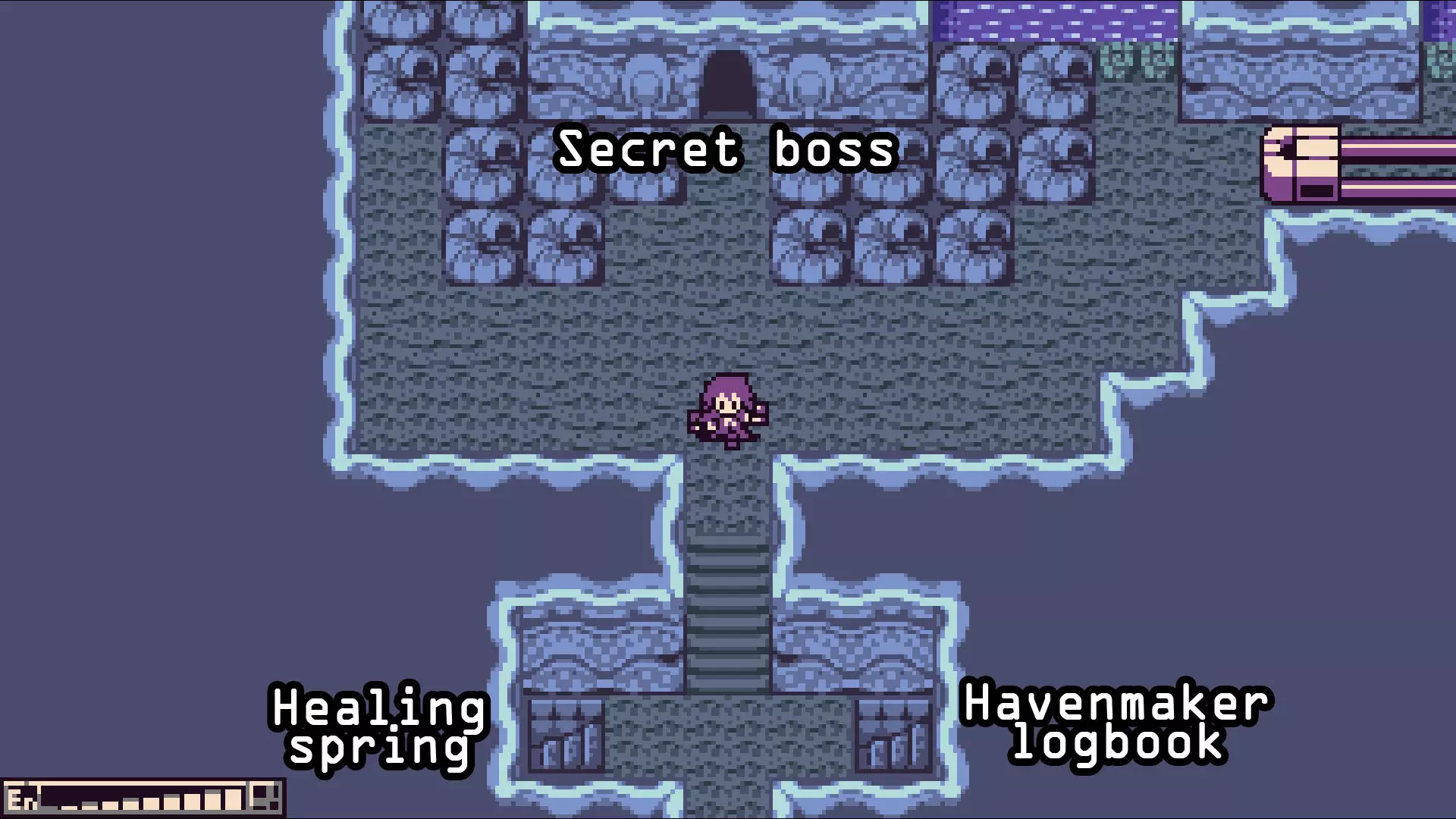 沿着另一条直线路径前进,经过一个小型暗礁房间后,你会看到两段楼梯和走廊尽头的一个房间。【首领】就在走廊尽头的那个房间里。
