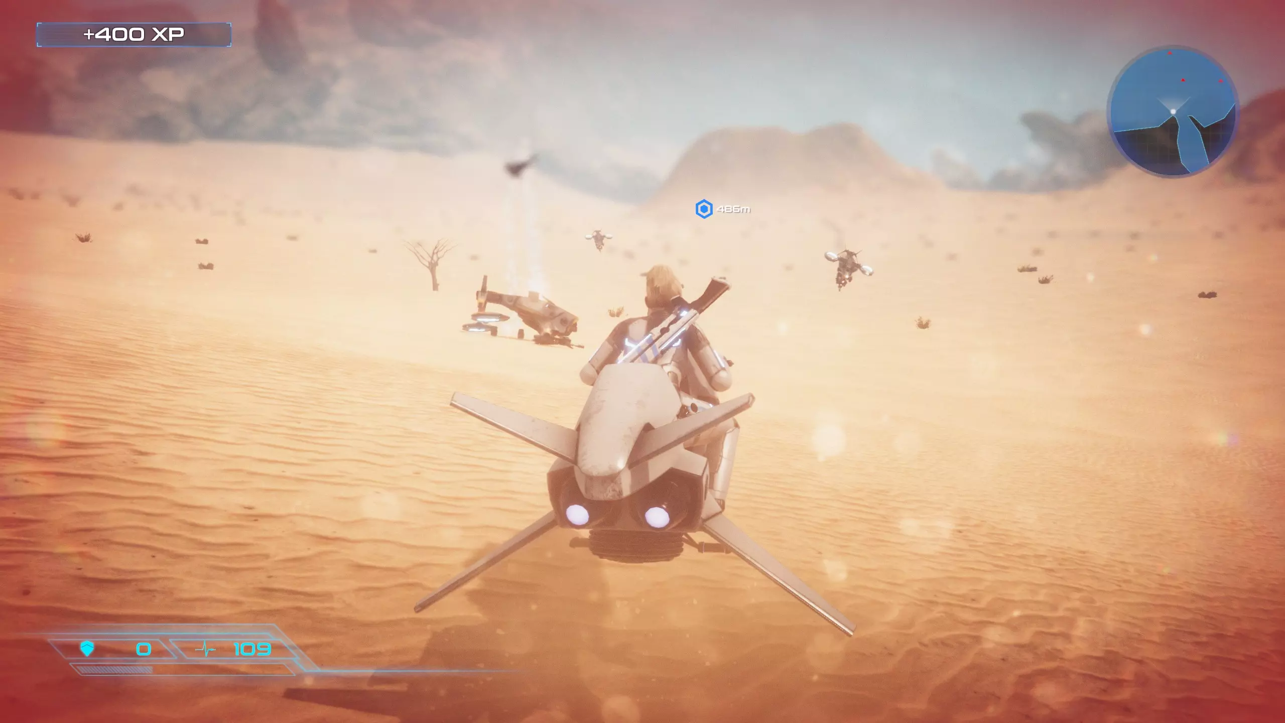 星云猎手 在沙漠中摧毁所有星云无人机。 悄悄躲过巨型炮艇的红光后,摧毁全部11架星云无人机: