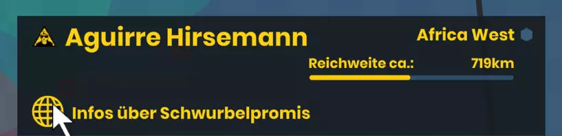 仅在游戏外:继续游戏 继续上次加载的游戏。 仅在游戏内:返回游戏 关闭菜单并回到当前游戏。 仅在游戏内:保存游戏进度 你可以在此保存当前游戏进度。可以覆盖旧的游戏进度。此外,你可以打开保存位置。 加载游戏进度 你可以在此加载之前保存的游戏进度。此外,你可以打开保存位置。 开始新游戏 开始一个全新的游戏。 设置 目前你可以在此调整音量。 制作人员名单 暂未开放。 退出 返回桌面。 操作说明 使用鼠标滚轮缩放地图。 点击世界地图并按住鼠标拖动。用左键在世界地图上选择目标。 当你在世界地图界面时,按Escape键可以打开主菜单。 指挥中心