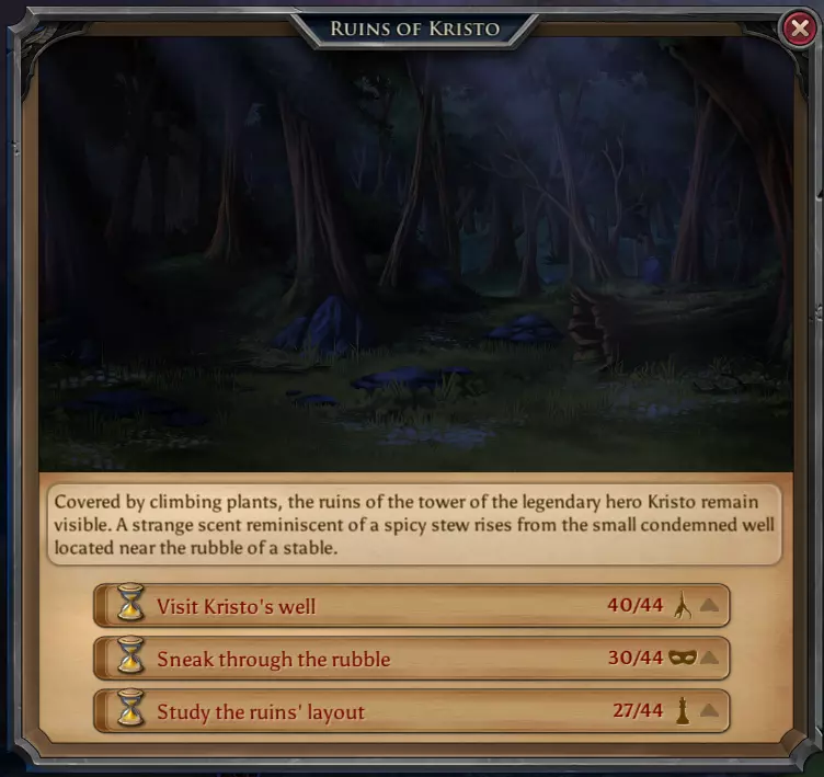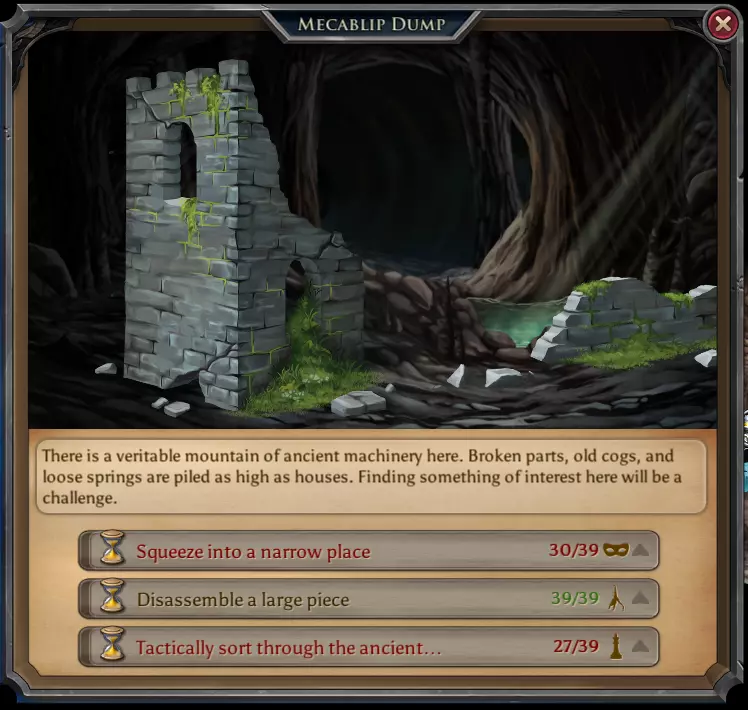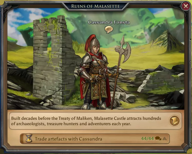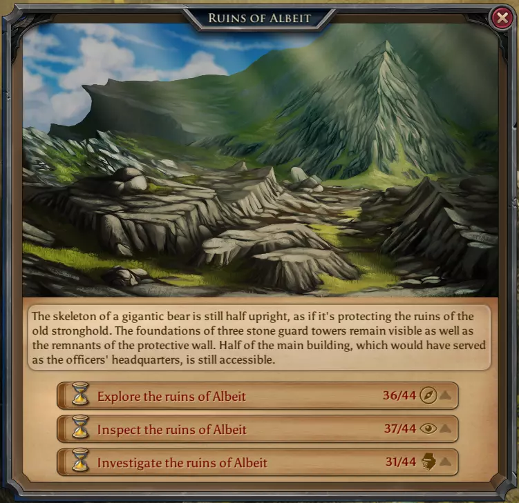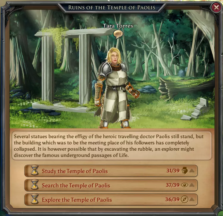 高地生物。150点战斗精通及2000金币 每日遗迹 当你在游戏中进展到足够程度时,你将开始解锁这些地点。现在,这些地点对你每天完成来说极为重要。总共有6个地点,包含14个行动。完成每个行动将随机给予一定数量的杂物和1-2个随机雕像,偶尔还有机会获得一些稀有雕像。 警告:制作每个魔法附魔都需要大量雕像。这就是为什么无论如何你都必须完成这些每日任务的原因。 可能的战利品: 14-28个雕像 7000-10000金币的杂物 以及获得一些稀有雕像的机会 1. 保利斯废墟神庙