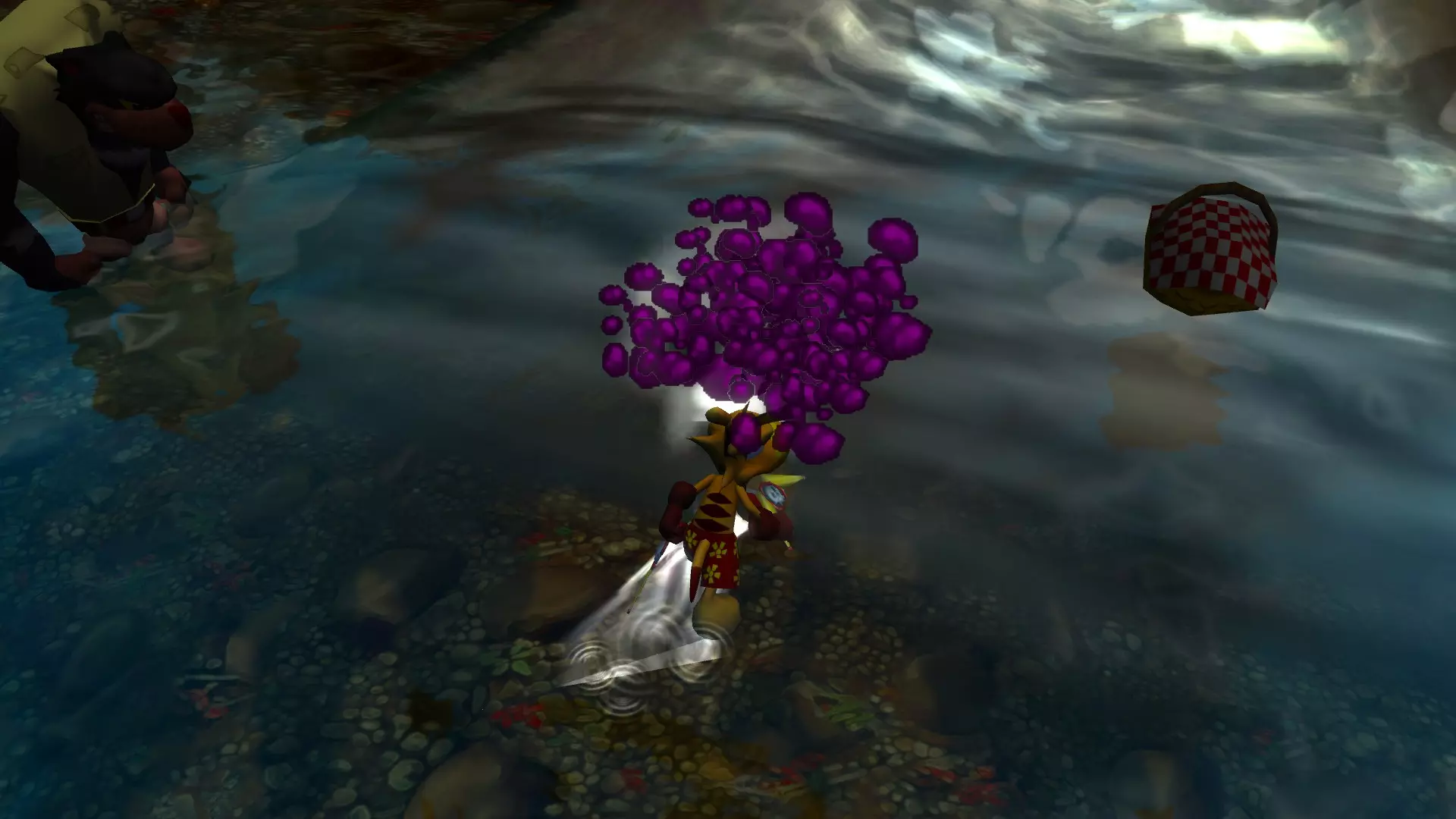 接下来你只需按住咬击键,泰伊就会做出奇特的姿态,松开按键后,他就会向前猛冲出去。你要做的就是确保前方是火鸡。