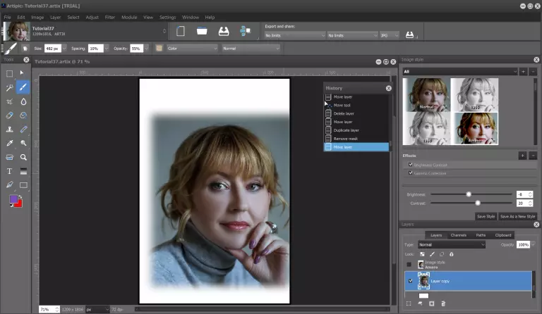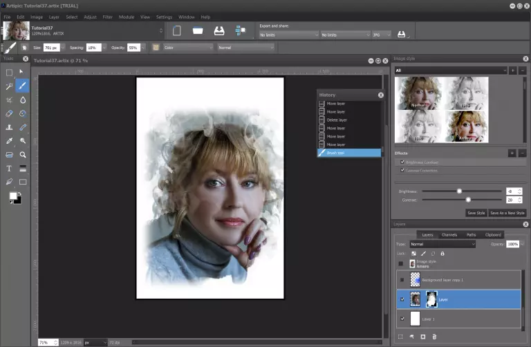 步骤2 将新画笔应用到肖像上。