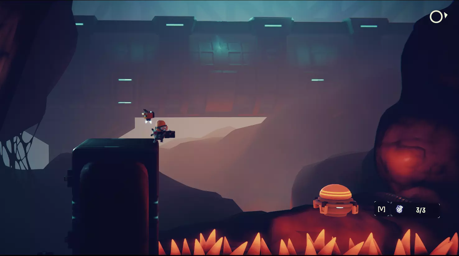 在第一关/房间的出口前,你需要跳上左上方的石头,第一次尝试后你就能看到激光,我们要去那里。