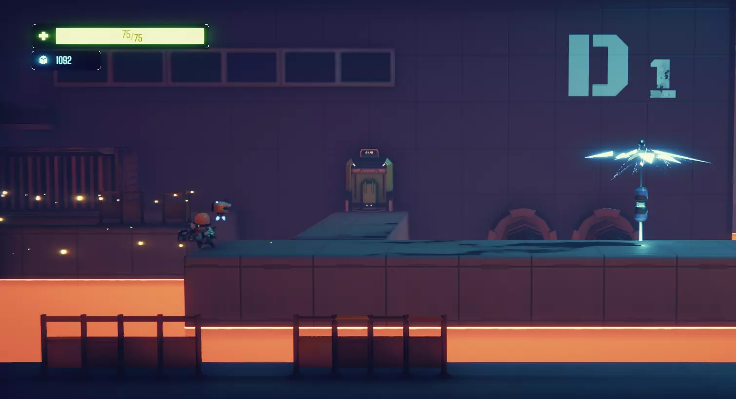 我们不断通过关卡,直到在某个关卡的开头,看到墙上写着【D1】的字样。 这时我们需要向左转,借助钩子或者几次跳跃来越过熔岩湖。