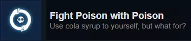 奖励:【鹰眼】强化(非常有助于寻找秘密区域)。 Fight Poison with Poison 获取该成就最简单的方法是利用速通模式。进入速通模式后,打开背包。我们需要装备可乐糖浆来替代普通手榴弹。