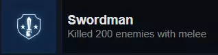 用近战武器消灭200名敌人。(获得剑后很容易完成,但用踢击击杀的敌人也会被计入)