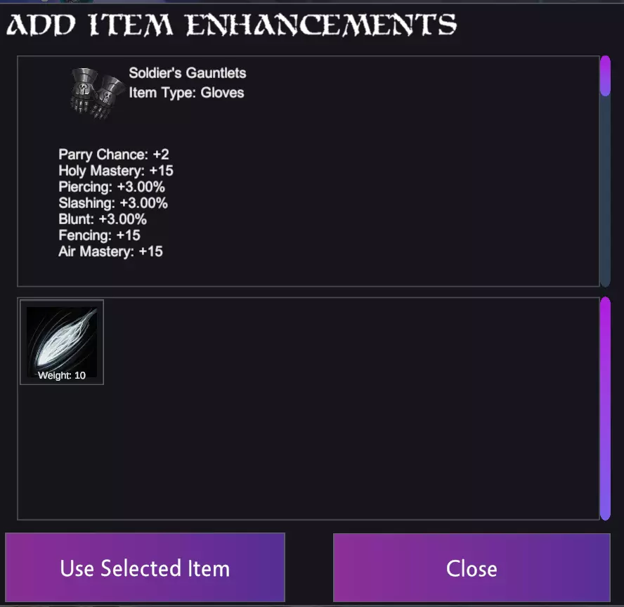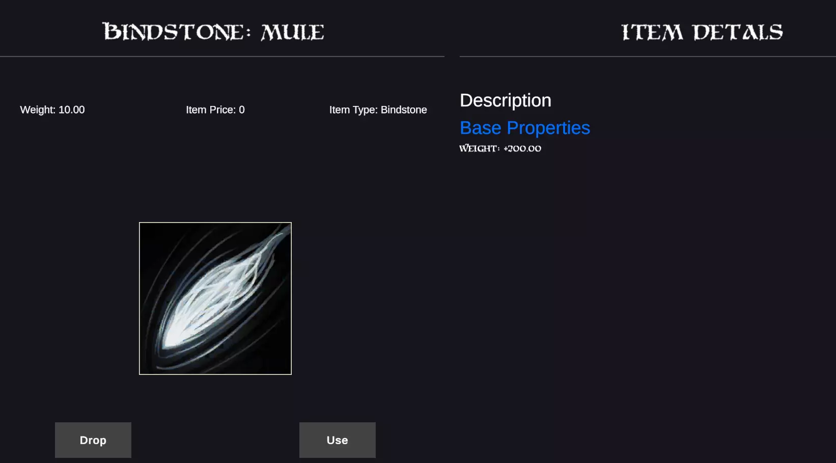 这件物品看起来有超过5个词缀,但实际上并没有。该物品的词缀如下: 偏转 - 格挡几率+2 神圣 - 神圣专精+15 巨像 - 穿刺/挥砍/钝击抗性+3.00% 决斗者 - 击剑+15 风暴 - 空气专精+15 如果你使用绑定石强化上述物品,它将随机替换掉其中一个现有属性。 我在哪里可以找到绑定石?这些物品仅在游戏后期抵达冰之王国后才能获取。 兑换矮人 artifacts:可与火铁大厅的历史学家进行兑换,该道具由以下怪物掉落:熔岩元素(火铁矿井精英怪)必定掉落,冰巨魔精英怪掉落,普通巨魔(冰巨魔洞穴)稀有掉落。 成功完成布尔戈尔事件(冰巨魔洞穴)。 在此我会使用【骡马绑定石】,它能增加200点负重。需要注意的是,该道具必须在你的背包中才能生效,因为你无法强化已装备的装备。