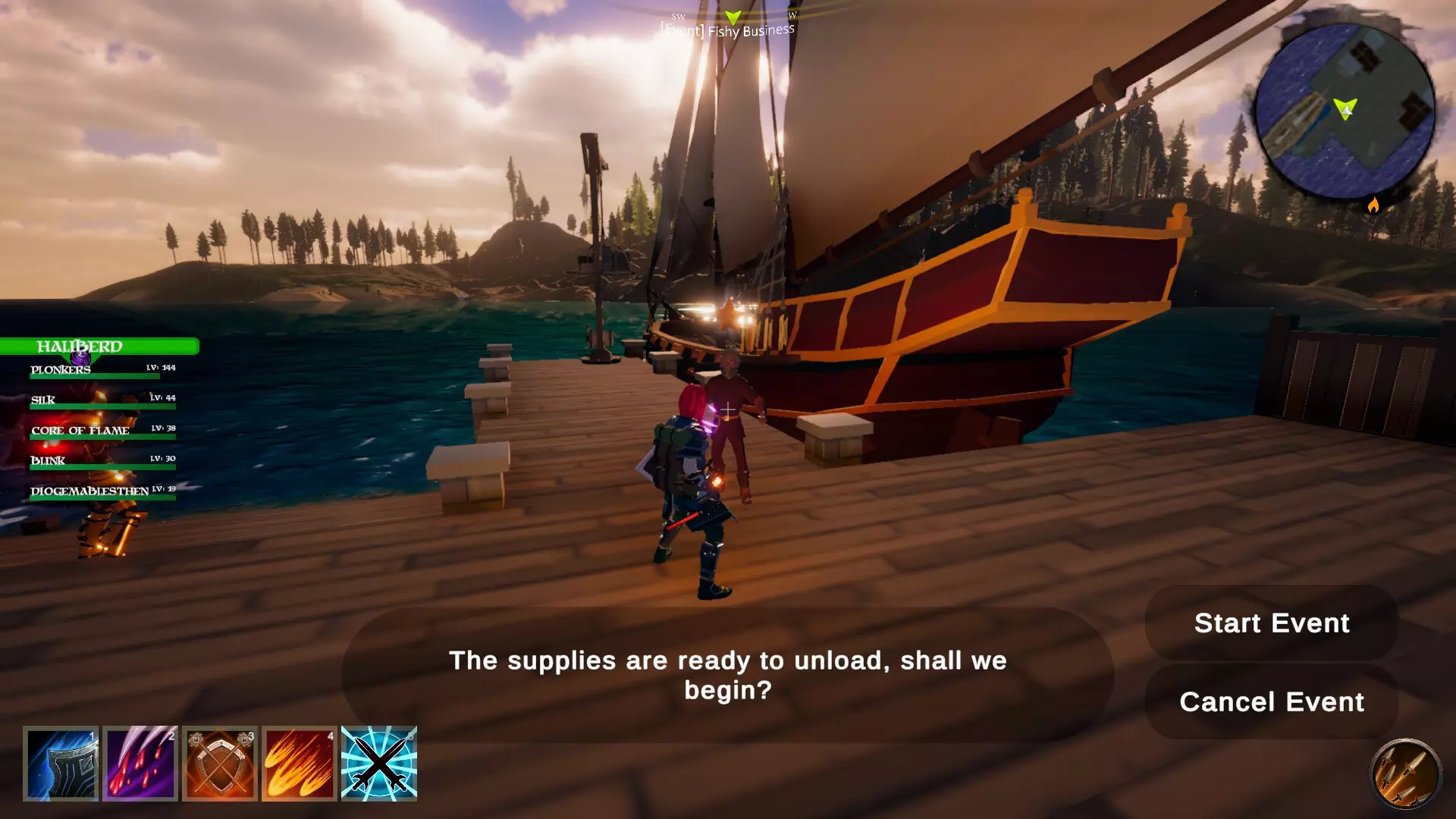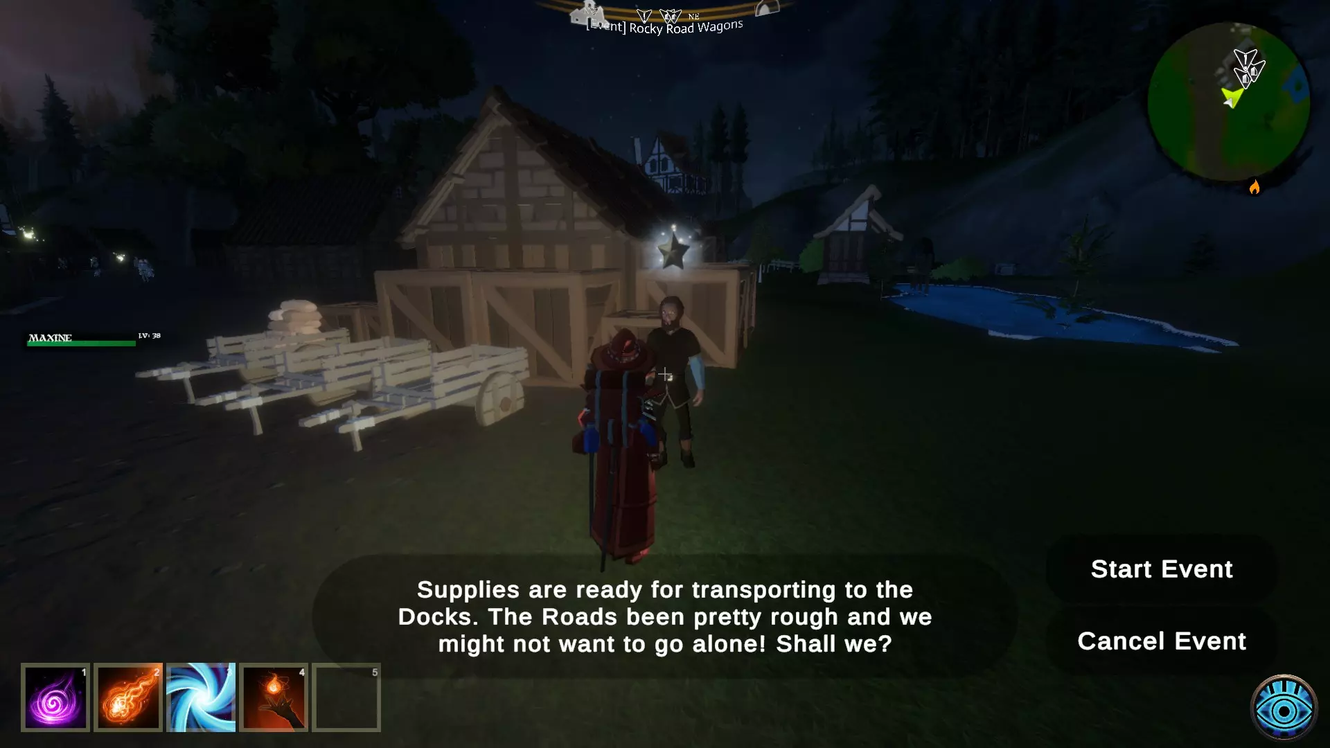 任务目标:会生成一个带 wagon(马车)的 NPC,玩家需要保护马车抵御 Goblins(哥布林)并护送其前往 Genmire Harbour(根迈尔港),必须保持在马车附近一定范围内。一旦马车抵达港口,玩家将获得活动奖励 失败条件:马车被摧毁 可疑交易 起始地点:根迈尔,码头 推荐等级:25级以上(至少装备T1级装备)