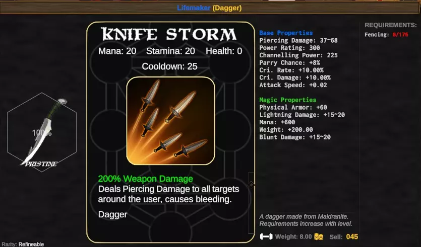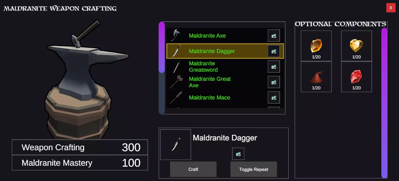 这里我们将制作一把马尔德兰石匕首,这是一把3级武器,无需任何材料。