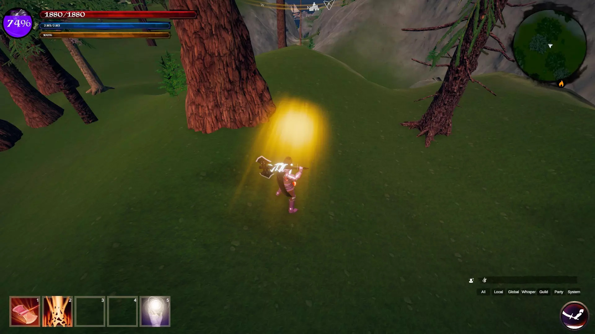 如何收集木材? 首先你需要装备一把斧头,但不能用它来砍树。 你需要寻找的是主要散布在森林区域的木材节点,你可以查看指南针来确认附近是否有木材节点。