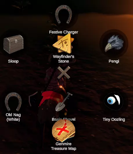 你可以使用“T”键打开轮盘菜单快速访问藏宝图,或者前往背包并从那里使用藏宝图,别忘了装备铲子!