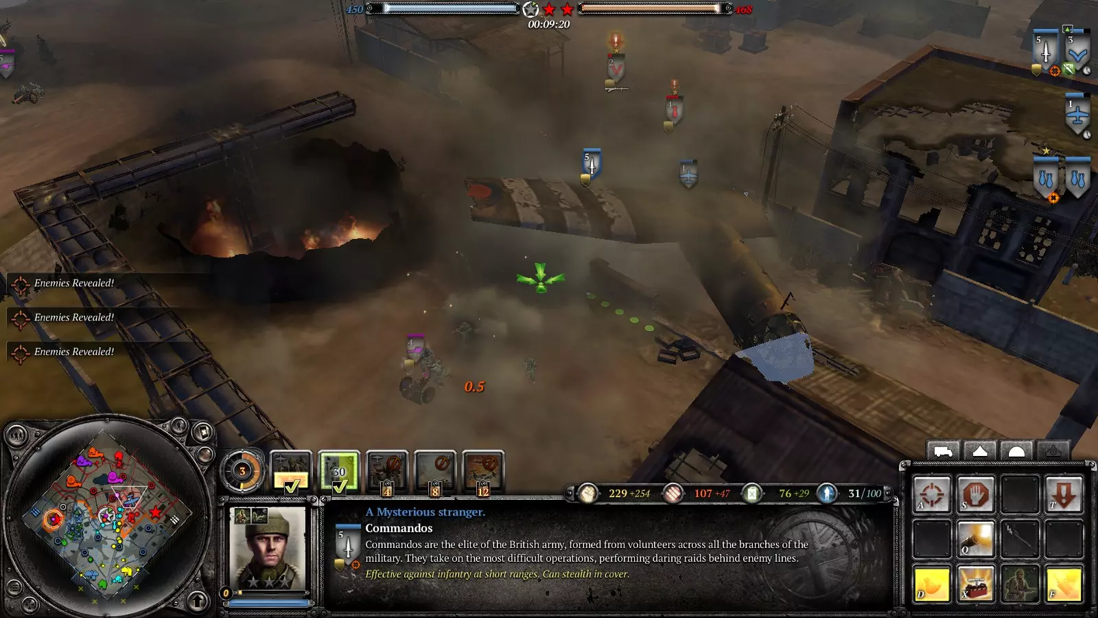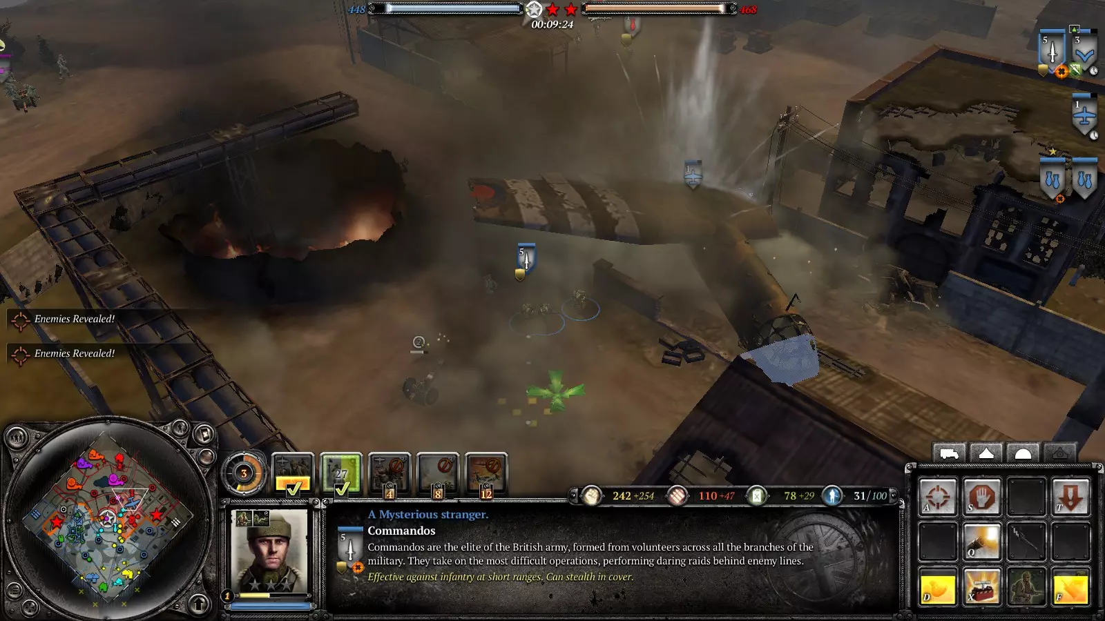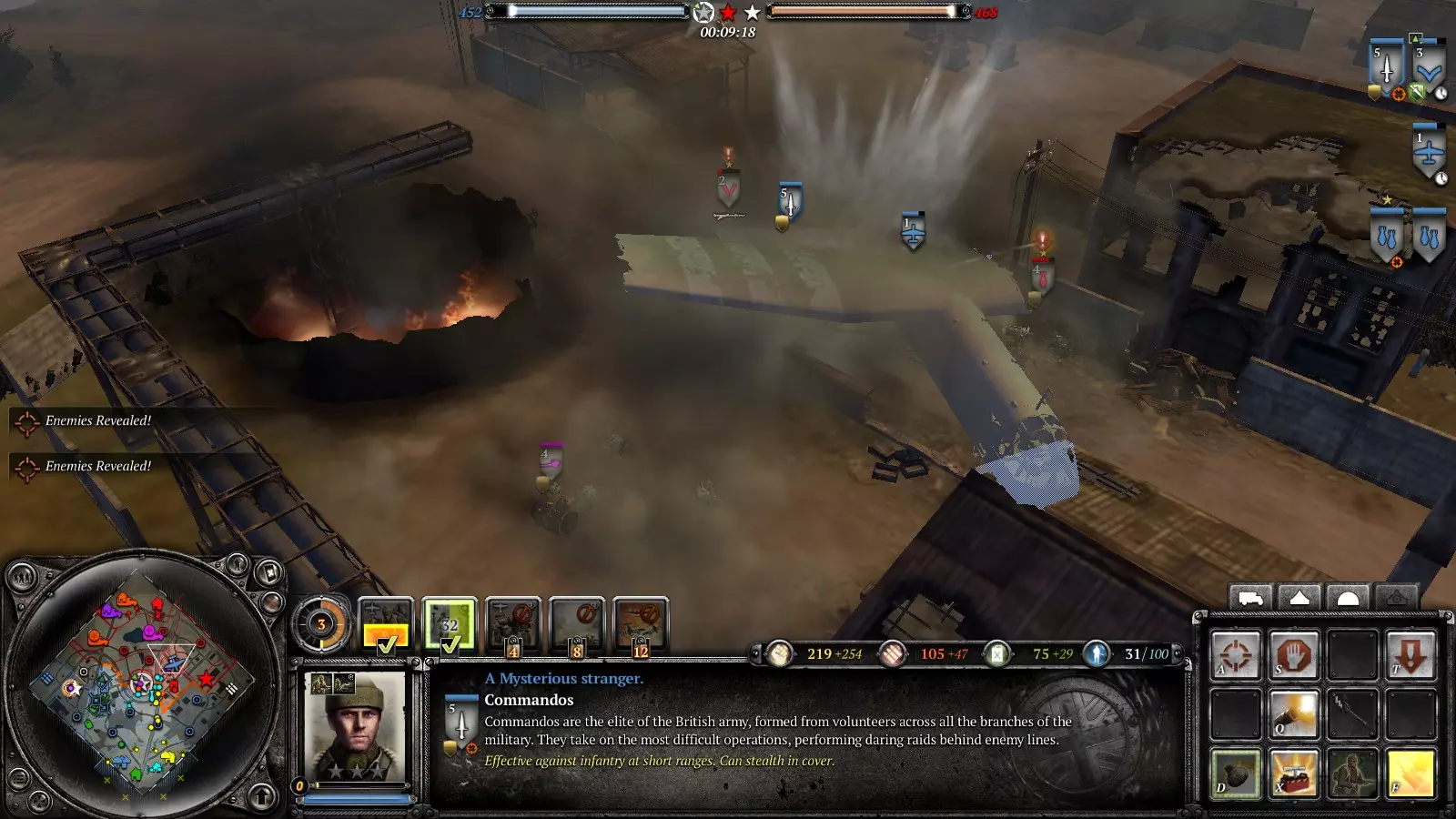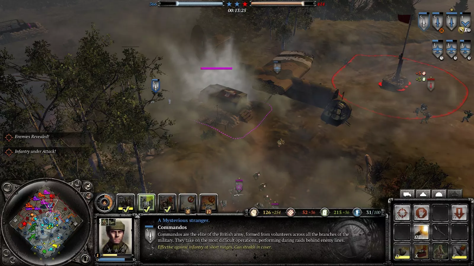 好的,士兵,迫击炮部署好了吗?部队都在吗?去他妈的,赶紧去抢占要点! 用烟雾弹掩护机枪、反坦克炮或者要点,或者直接呼叫烟雾空袭。派部队顶着烟雾冲向要点。敌人会被烟雾搞得晕头转向,开始往烟雾里扔手榴弹,你就在烟雾里埋伏好,把他们干掉。