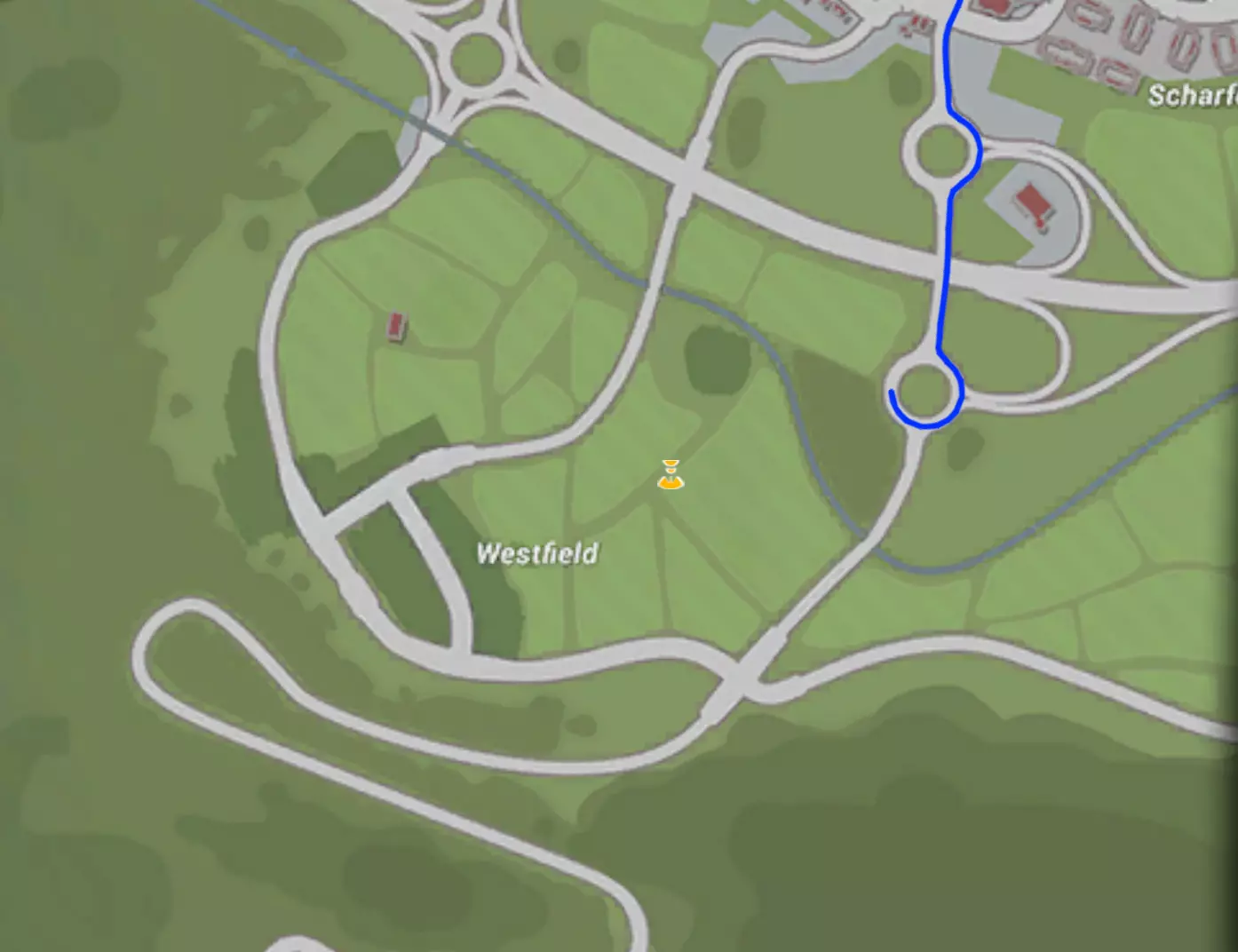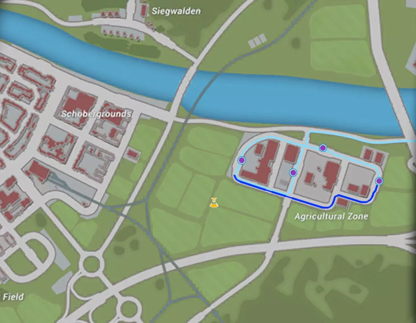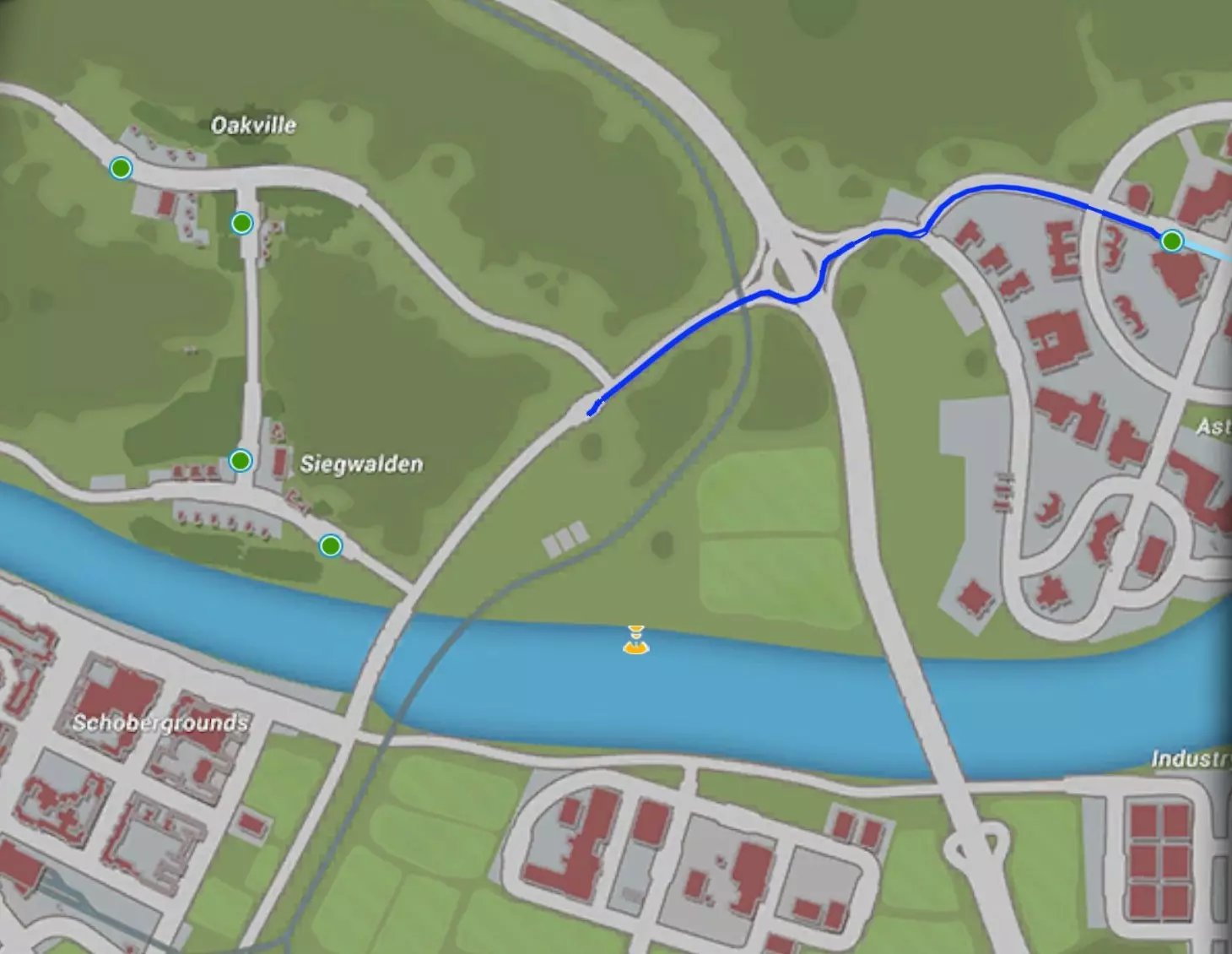 购物之旅 乡村 路线时长32分钟或更短=奥克维尔 - 中央站(右转) - 西格瓦登(右转) - 斯泰因内克西站(左转) - 韦斯特菲尔德 - 万德布特路(右转) - 下松施泰因(右转) - 毛特纳农场(右转) - 松施泰因主广场(左转) - 谷物巷(右转) - 克斯特施塔特教堂(左转) - 科技大学(左转)