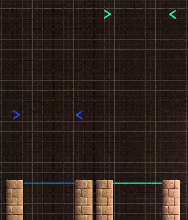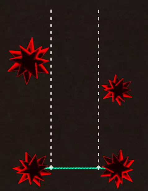 绿色蹦床尤其如此。蓝色蹦床是一种更为柔和且弹力较弱的变体,但作用与绿色蹦床相同,只是力量小得多,因此当然也适用于上述说明。当你碰到任意一种蹦床时,会出现一个无法左右移动的阶段,如上图所示。这意味着,如果你在这个脆弱位置放置任何类型的危险物,基本上就会造成无法通过的情况。