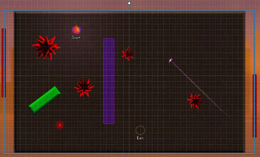 另一个例子是,这些路径被用作障碍物放置位置的参考,以便稍后提醒我们它们的位置,或者防止在某些时候移动了元素后忘记它们原来的位置。 大规模移动 你刚刚制作了一个东西,而且它非常精美!你花了好几个小时制作,甚至还添加了装饰,看起来既美观又精致。更不用说它完美居中,并且与关卡边界齐平!但是等等,你毫无明显理由地决定要移动所有东西,而且主意已定。但这意味着你要花费数小时费力地移动每一个元素。而且你不能使用网格吸附来再次居中,因为你除了在中间居中某物外,从未用网格做过其他事情。不过,这并不意味着你完全不能使用网格吸附功能。