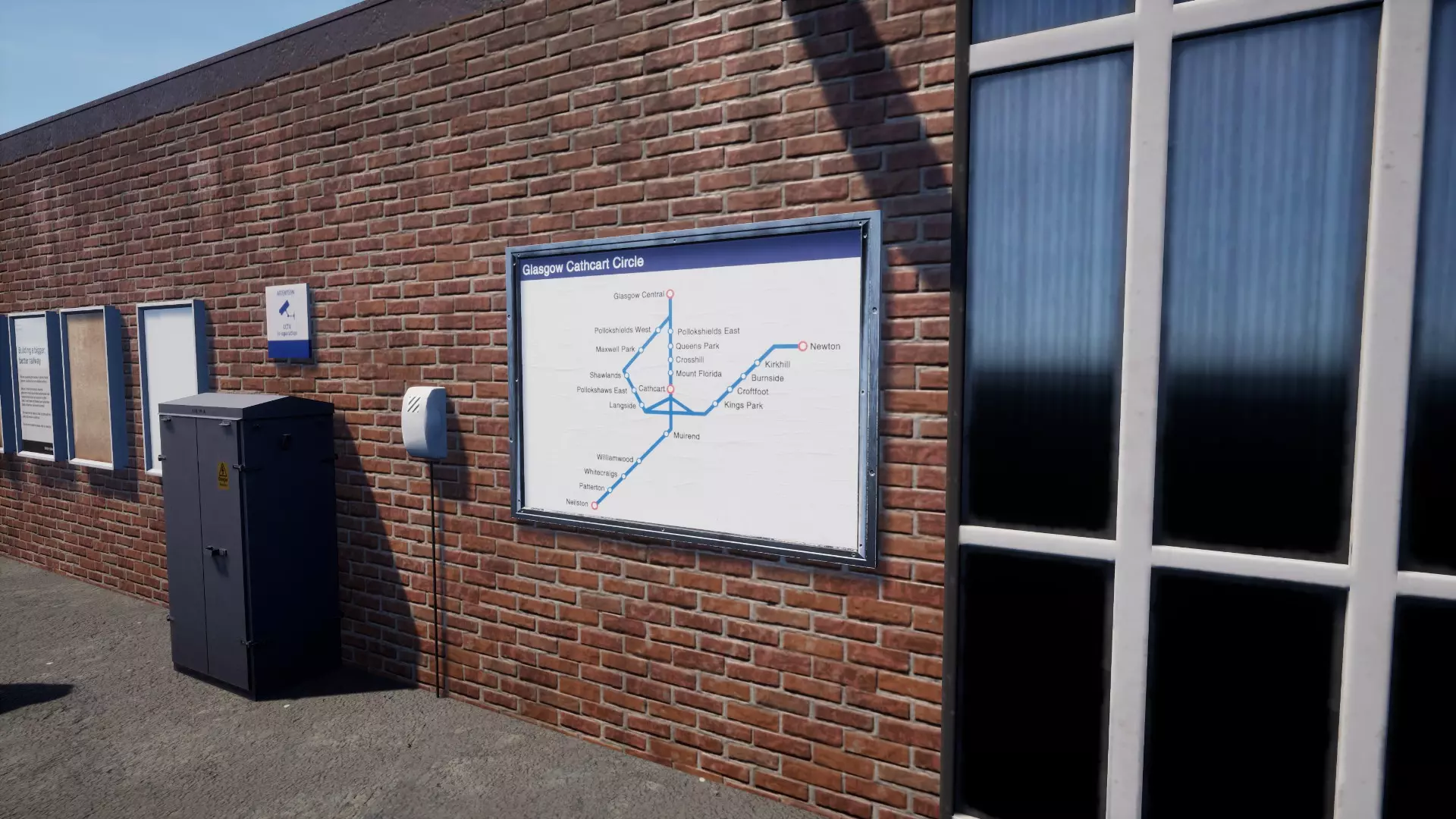 1. 格拉斯哥中央站 我们将从格拉斯哥中央站出发,经由希尔兹车辆段和东波洛克希尔德站前往尼尔斯顿站。随后转至牛顿站,并经西波洛克希尔德站返回格拉斯哥。 游戏内位置地图位置