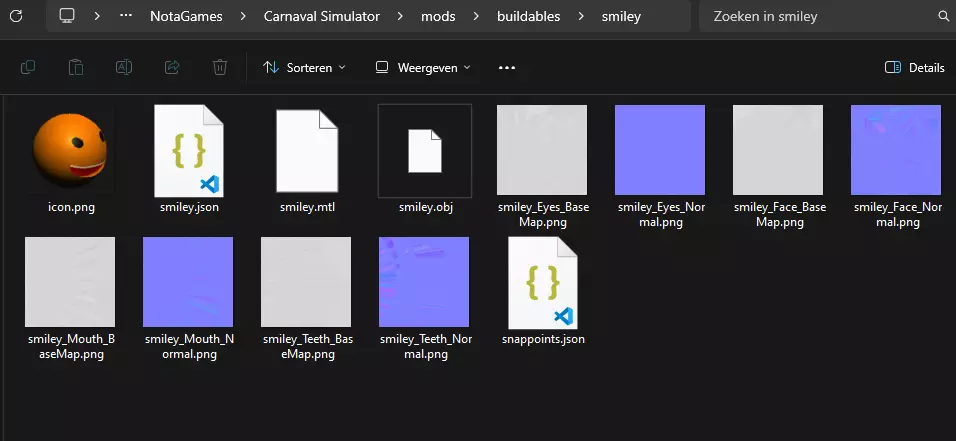 在开发你的模组期间,若遇到任何错误日志,你可能需要查看:“AppData LocalLow NotaGames Carnaval Simulator error_log.txt”。如果该文件不存在,请创建日志文件,以便在出现问题时记录额外信息。 如何创建道具模组? 最有趣的模组是道具模组,因为它们能让你创建出真正独特的花车。 要创建道具模组,请导航至游戏目录:“AppData LocalLow NotaGames Carnaval Simulator mods buildables”。这是你所有道具的模组文件夹。如果找不到此文件夹,你可以直接打开游戏并打开音乐文件夹,它会打开游戏的目录。此外,如果mods或buildables文件夹不存在,你可以创建它们。不过,一旦你首次打开游戏,它们应该会自动创建。 可以参考Steam创意工坊中的表情模组。 在可构建内容中,创建一个新文件夹,并将其命名为你的模组名称,注意不要包含空格或特殊字符。这个名称必须是唯一的。创建文件夹后,你可以在其中填充模组数据。 必要文件: Icon.png(128x128像素)-> 必须以此命名 【你的模组名称】.json -> 模组的配置文件 【你的模组名称】.obj -> 模组的模型文件,必须为.obj格式,可使用Blender导出 【你的模组名称】.mtl -> .obj文件的材质信息,在Blender中导出.obj时会自动生成 可选文件: 【你的模组名称】_【材质名称】_BaseMap.png -> 材质的基础贴图 <你的模组名称>_<材质名称>_Normal.png -> 材质的法线贴图 snappoints.json -> 道具吸附点配置文件 colors.json -> 若.obj文件导致道具脱色时的道具颜色配置文件 为每个材质添加基础贴图和法线贴图。建议将基础贴图设为白色(灰色阴影用于呈现细节),以便用户进行重新着色。.mtl文件会在之后应用颜色数据,作为玩家在游戏中购买该道具时的默认颜色。 最终你会得到类似这样的文件结构。