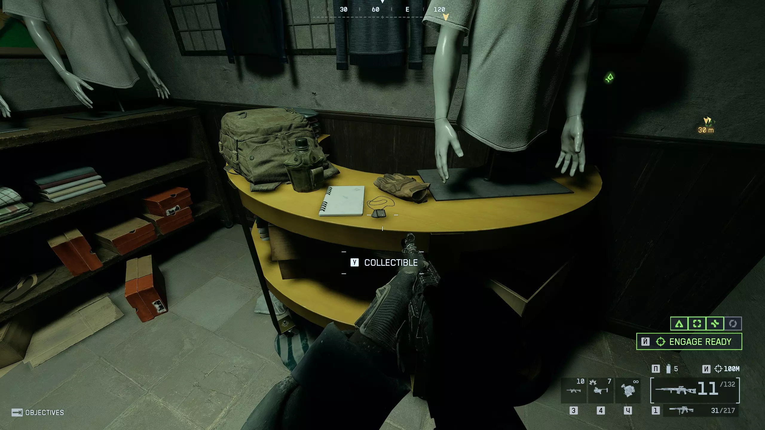 第十二个代币 该代币位于其中一家服装店,这些服装店有着相同的内饰和人体模型。目标商店内有一张半圆形的黄色桌子。