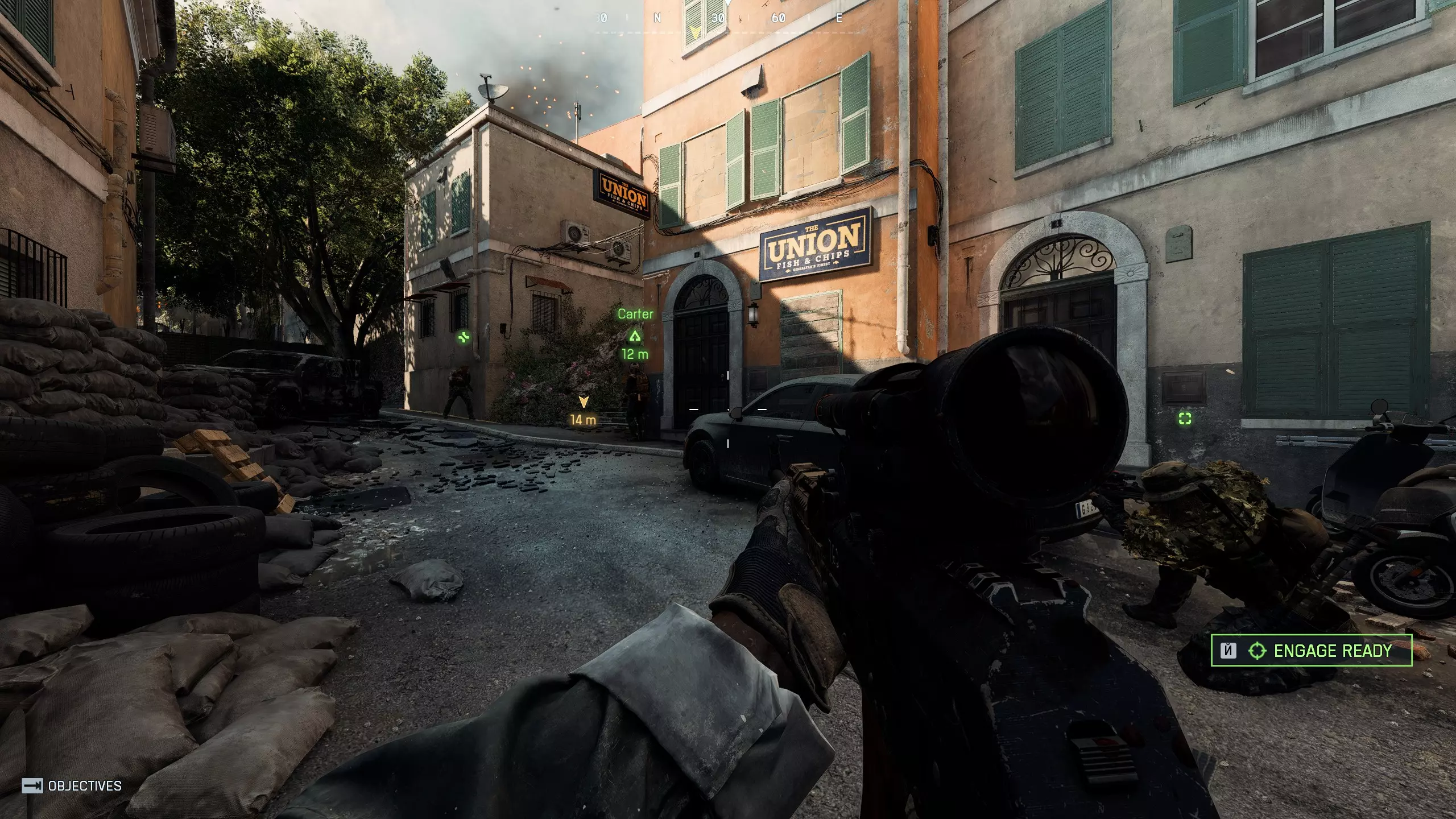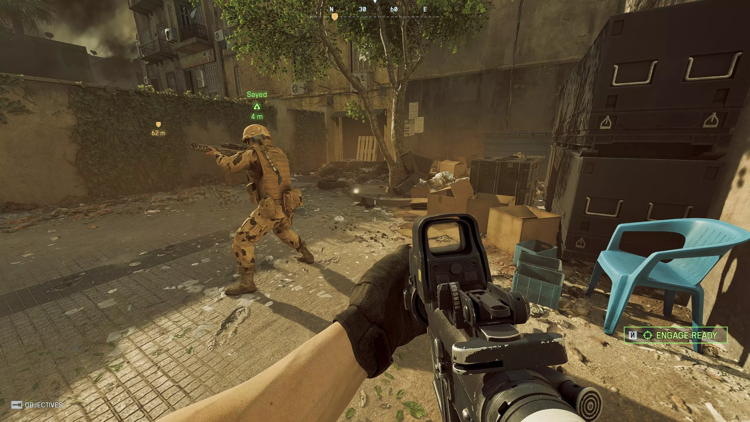 7. 尼罗河守卫 第二十一个代币 90%的任务是坦克射击。当你匆忙赶路时——通过这家商店后不要立即左转,而是查看商店后面的院子——代币在树下。