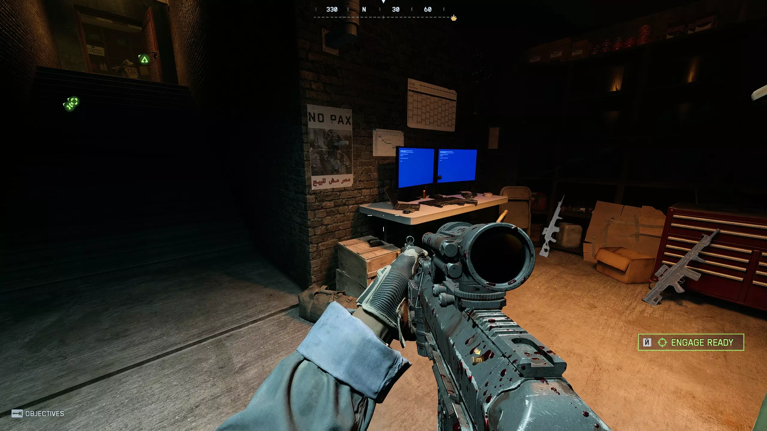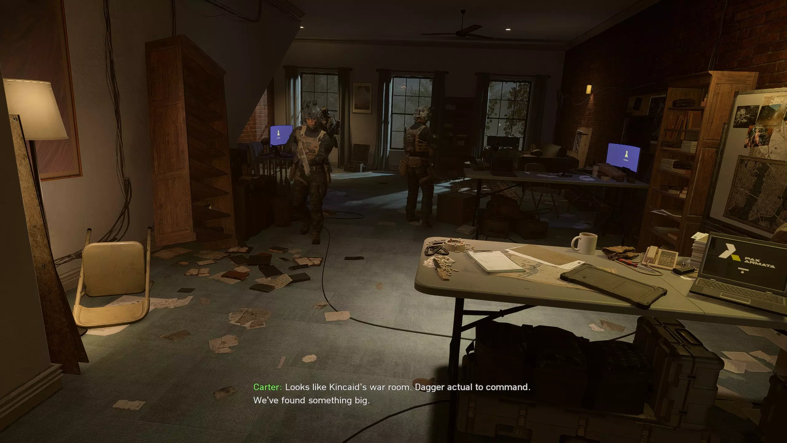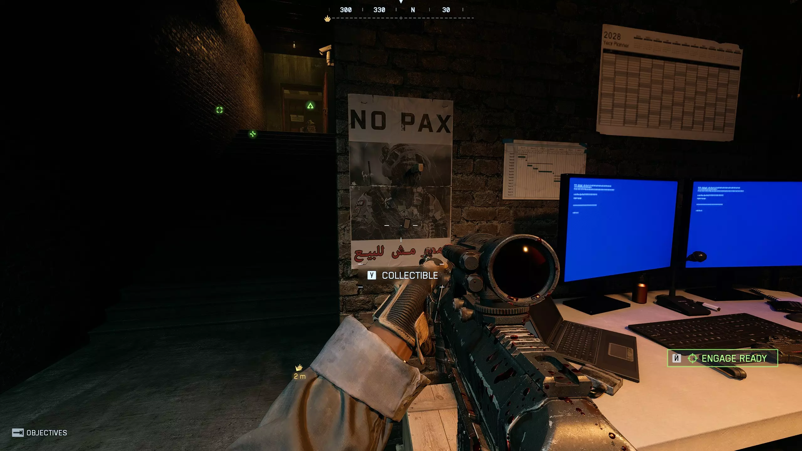 第十五枚代币:突袭其中一栋房屋后,你会进入一个有Pax Armata电脑的房间——在其中一间暗室里寻找代币的闪光。