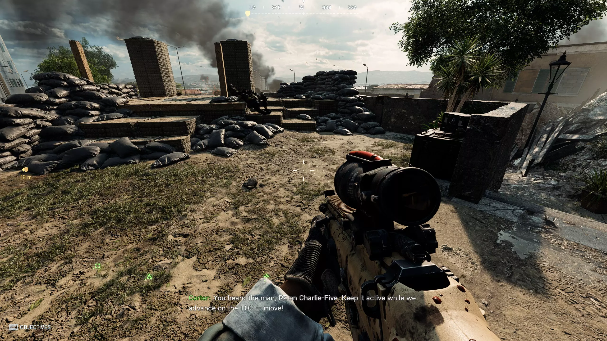 3. 剑刃行动 第七个代币 请注意这片区域——五夺点模式中的【D】点。代币位于敌方一侧的火力点处。