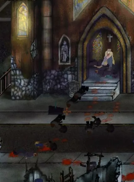 教堂 在名为【贫民窟】的关卡中,你可以在关卡的右上角找到一座教堂。当你消灭所有从教堂里出来的敌人后,就能进入教堂并听到人们在唱歌。