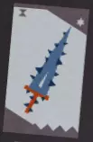 在强大的力量选择中出现,和竖琴一样。不过需要注意的是卡片选择之后记得使用,使用过后图鉴就可以点亮啦~ 可以从怪物身上窃取的卡片 家中常备健胃消食片月牙弯刀——居家旅行必备。当然,除了月牙弯刀,游戏中可以触发窃取机制的还有猫猫怪身上的镰刀、小狮子身上的大镰刀、倒水滴形魔法卡片(每个怪物身上获取一张卡片)、强化过的鞭子和匕首等等……大家各取所需。 这一部分主要来自于【船夫之路】里的怪物,和普通武器只要观察怪物身上拿着的武器一般情况下所见即所得不同,有些卡片真的蛮抽象的…… 1.带刺的剑