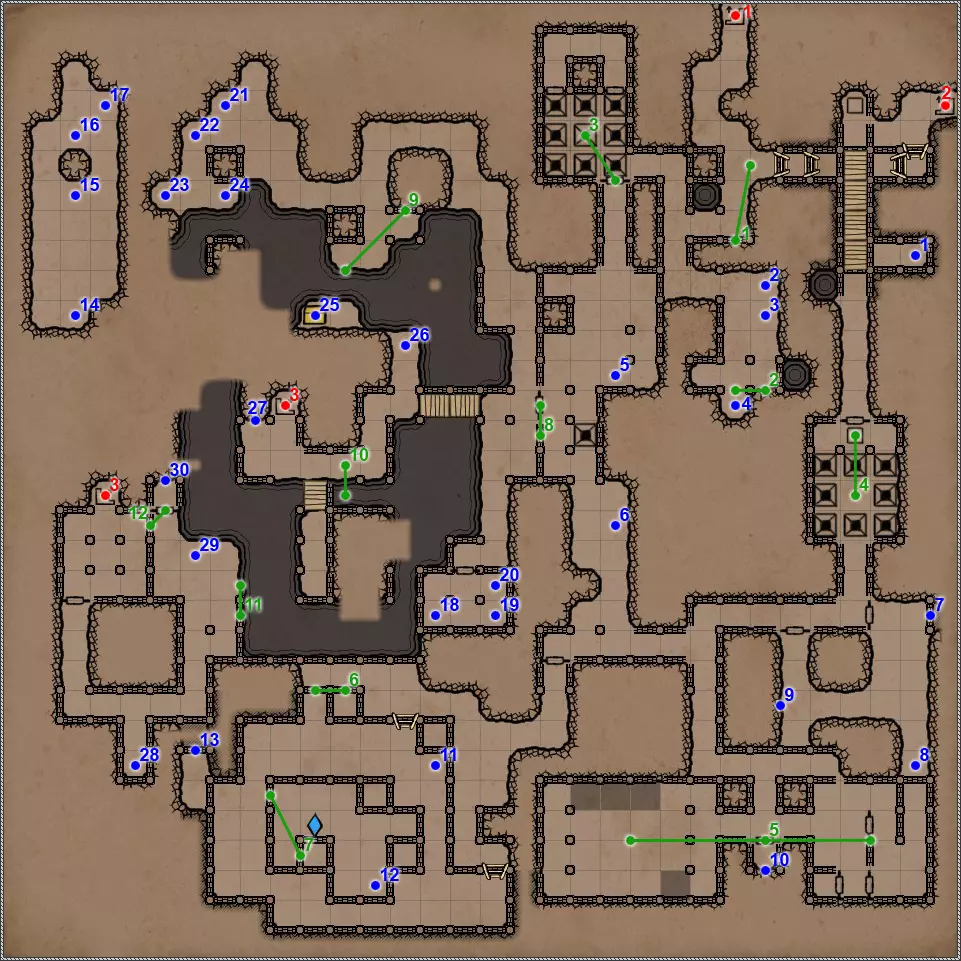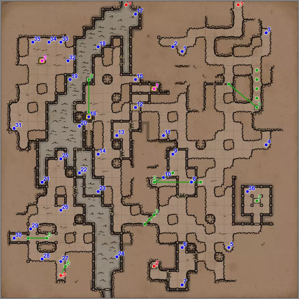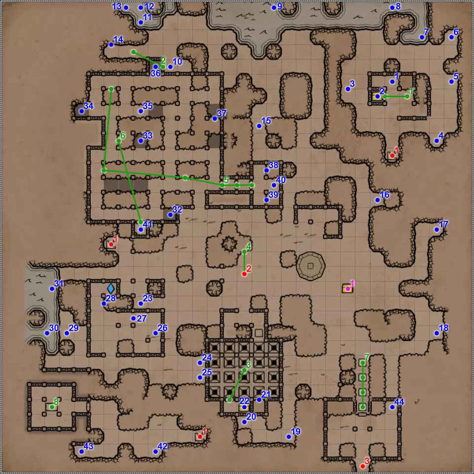入口/出口 遗忘之河 被淹没的地牢 德萨伦遗迹 墓地 档案馆 乌玛斯金字塔 荒芜沙漠