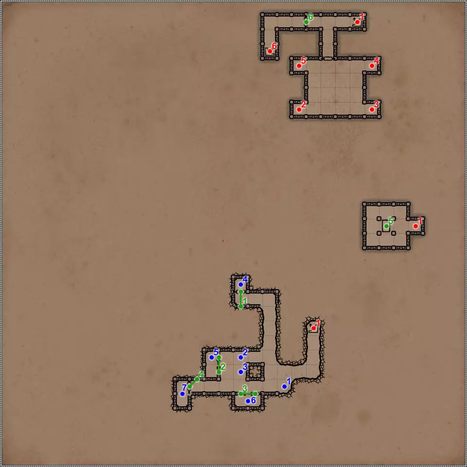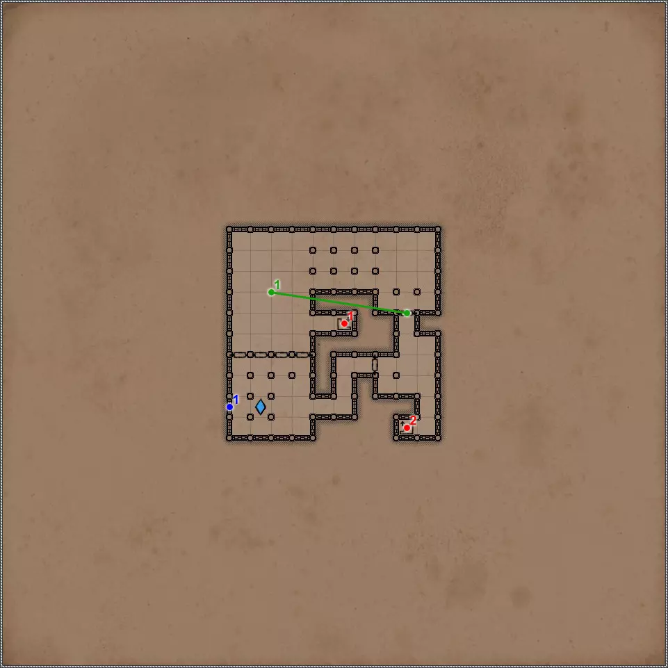 开关/谜题 隐藏按钮与秘密通道 隐藏按钮与秘密通道 压力板。将格子里的蜘蛛传送到上方,以解开【德萨伦遗迹】谜题5。 秘密(77个中的30个)。秘密通道。当你解开【德萨伦遗迹】谜题5时,这面墙会打开。 秘密(77个中的36个)。隐藏按钮与秘密通道。 压力板和三个栅栏。要打开这扇格栅,需要进行简单的密码破译。密码的线索位于词汇宝库中。UHA NA. AR E. TE NA. LAM E. AR NA. 破译结果:向前两步,向左一步,向右两步,向后一步,向左两步。你需要站在房间入口处的空方格上,面朝南方,然后按照上述顺序踩踏石板。 秘密(43/77)。要打开格栅,和之前的步骤一样,需要按照指定顺序踩下石板。唯一的问题是密码中存在密钥里没有的单词,所以需要进行推测。TE. UHA NA. PALA. UHA NA. PALA NA. AR E. FAAM KO. LAM KO. 解密结果:向右,向前两步,向左转,向前两步,向左转两次,向左一步,向右转三次,向后三步。