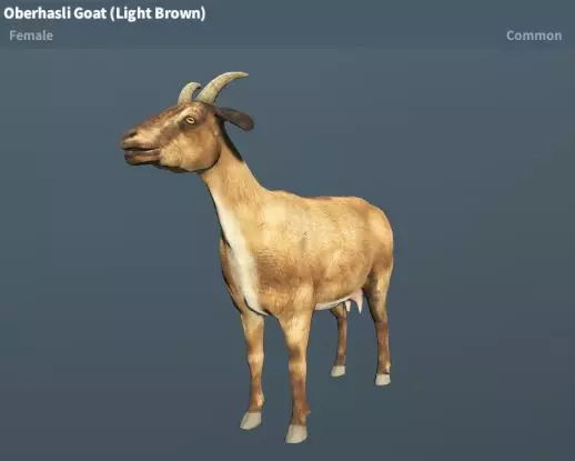 奥伯哈塞尔山羊(棕色、浅棕色) 稀有度:普通 性格:温顺 分布地图:阿哈利沙漠、绿山、高玫瑰、新星基地、雪岭高地