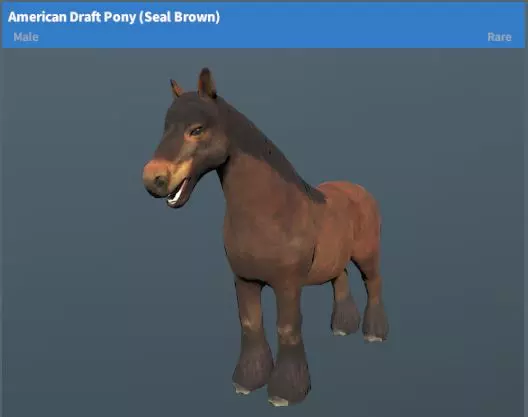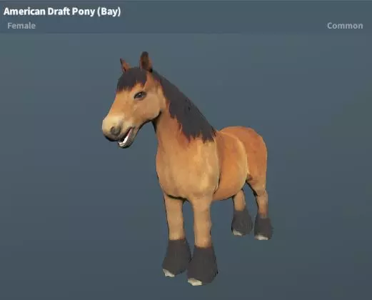 美国役用矮马(枣色)稀有度:普通 性格:温顺 地图:红山、多拉多、新星基地、雪岭高地
