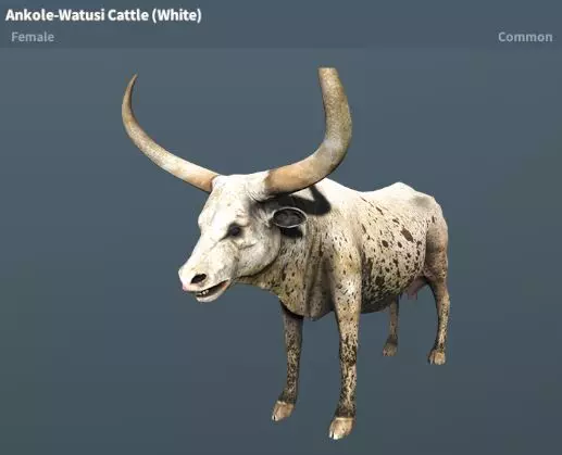 安科勒-瓦图西牛(白色、棕色) 稀有度:普通 性格:中立 地图:阿卡利沙漠、琥珀山、巴达姆、多拉多、红山