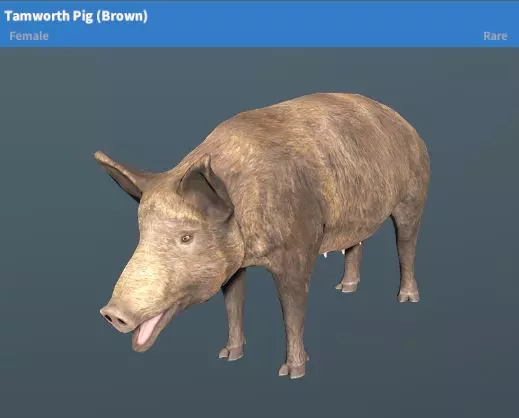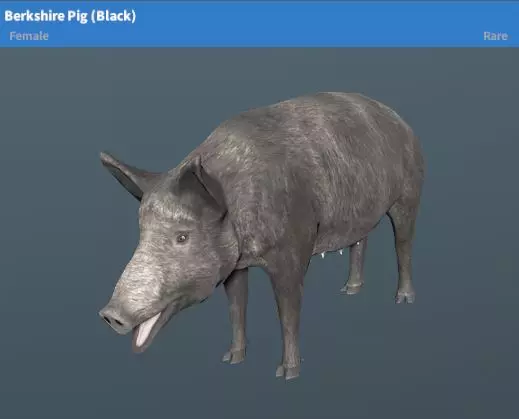 繁殖变种:野猪幼崽(棕色、黑色) 繁殖时间:X小时 图片 伯克夏猪(黑色、灰色) 稀有度:稀有 性格:中立 地图:琥珀山、陆地基地