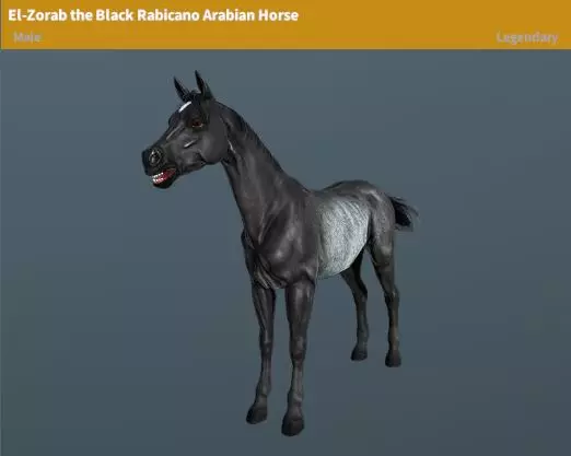 繁殖变种:阿拉伯马(血栗色) 稀有度:稀有 繁殖时间:4小时 黑 Rabicano 阿拉伯马“El-Zorab” 稀有度:传说 性格:温顺 地图: