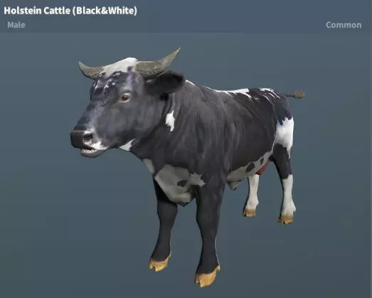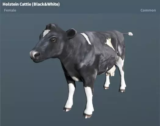 荷斯坦牛(黑白花、棕白花) 稀有度:普通 性格:温顺(雌性)、中立(雄性) 分布地图:琥珀山、尸港、邪教堡、青山、陆地基地