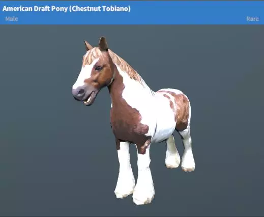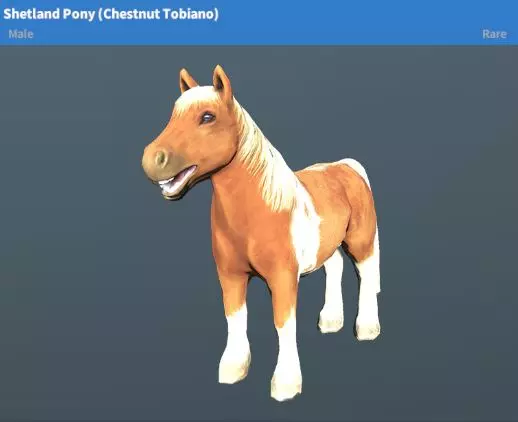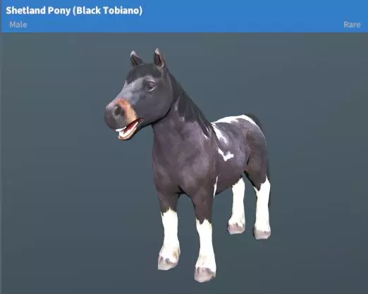 设得兰矮马(黑色花斑、栗色花斑)稀有度:稀有性格:温顺地图:新星基地、绿山丘陵