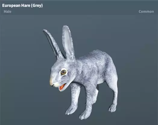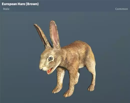 -兔子 欧洲野兔(棕色)稀有度:常见 性格:温顺 地图:Highrose、Nova Base
