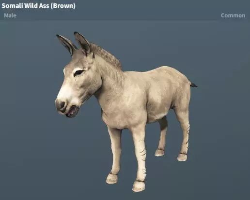 索马里野驴(灰色、棕色)稀有度:普通 性格:温顺 地图:阿卡里沙漠