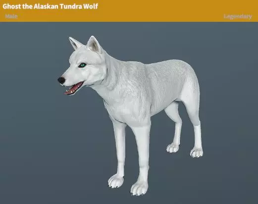 繁殖变种:红狼幼崽(深红色、红色、浅红色) 繁殖时间:X小时 阿拉斯加苔原狼“幽灵” 稀有度:传说 性格:好斗 地图:雪岭高地