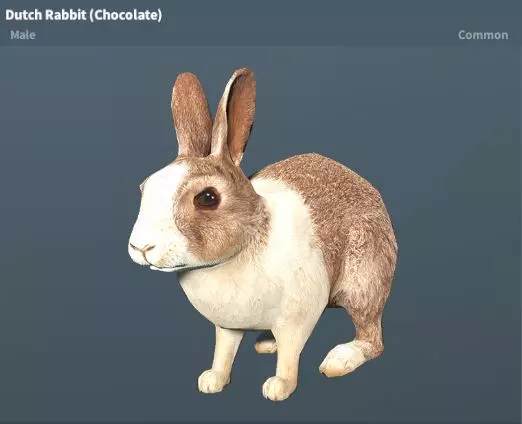 繁殖变种:荷兰兔宝宝(花斑、巧克力色、黑色、金色、蓝色) 繁殖时间:2小时 欧洲野兔(棕色、灰色、深棕色) 稀有度:普通 性格:温顺 地图:琥珀山、尸港、邪教山、鹰巢、绿山、陆地基地、新星基地、红山