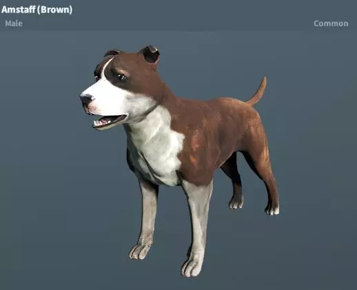 美国斯塔福郡梗(棕、黑)稀有度:普通 性格:中立 地图:琥珀山、尸骸港、邪教堡、多拉多、绿山、狐仙穴、陆地基地、红山