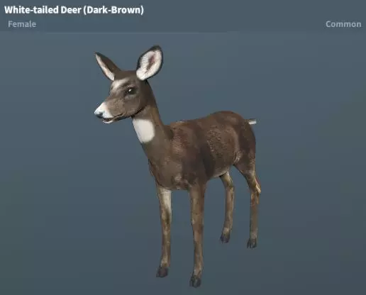 繁殖变种:白尾鹿幼崽(棕色、浅棕色、深灰色) 繁殖时间:4小时 马鹿(棕色、深棕色、红棕色) 稀有度:普通 性格:温顺 地图:琥珀山、鹰巢、绿山、新星基地、陆地基地