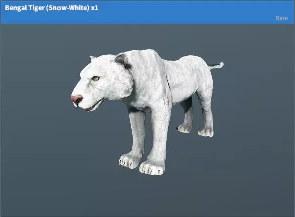 孟加拉虎(雪白)稀有度:稀有 花费:1蓝宝石 50绿松石 5髯鸢尾