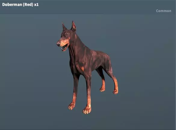 杜宾犬(红色) 稀有度:普通 价格:200银币 100铜币