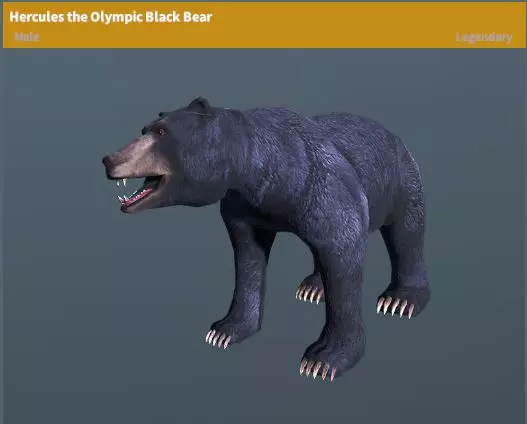 繁殖变种:黑熊幼崽(黑色、巧克力色) 繁殖时间:X小时 图片 赫拉克勒斯——奥林匹克黑熊 稀有度:传说 性格:好斗 地图:红山